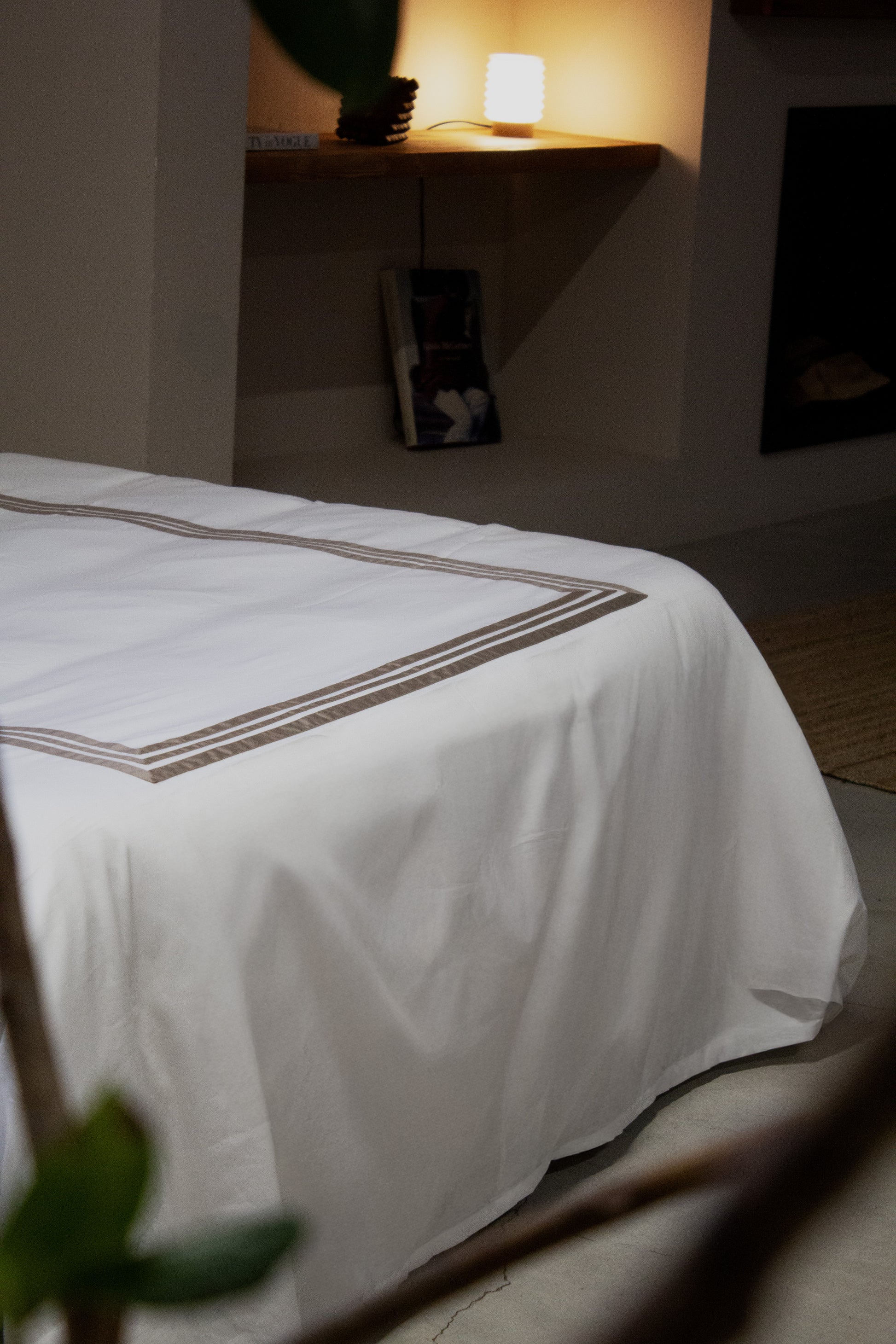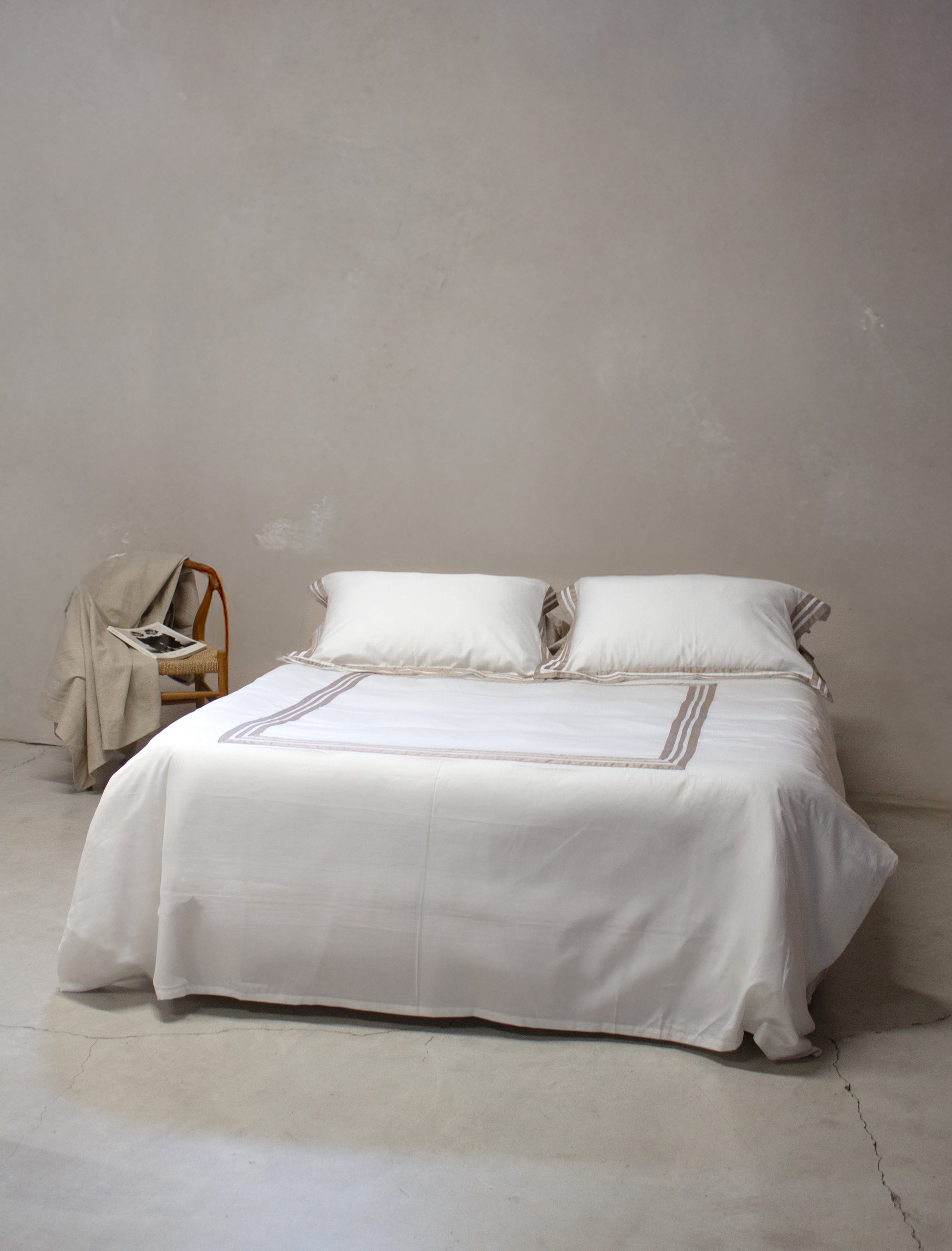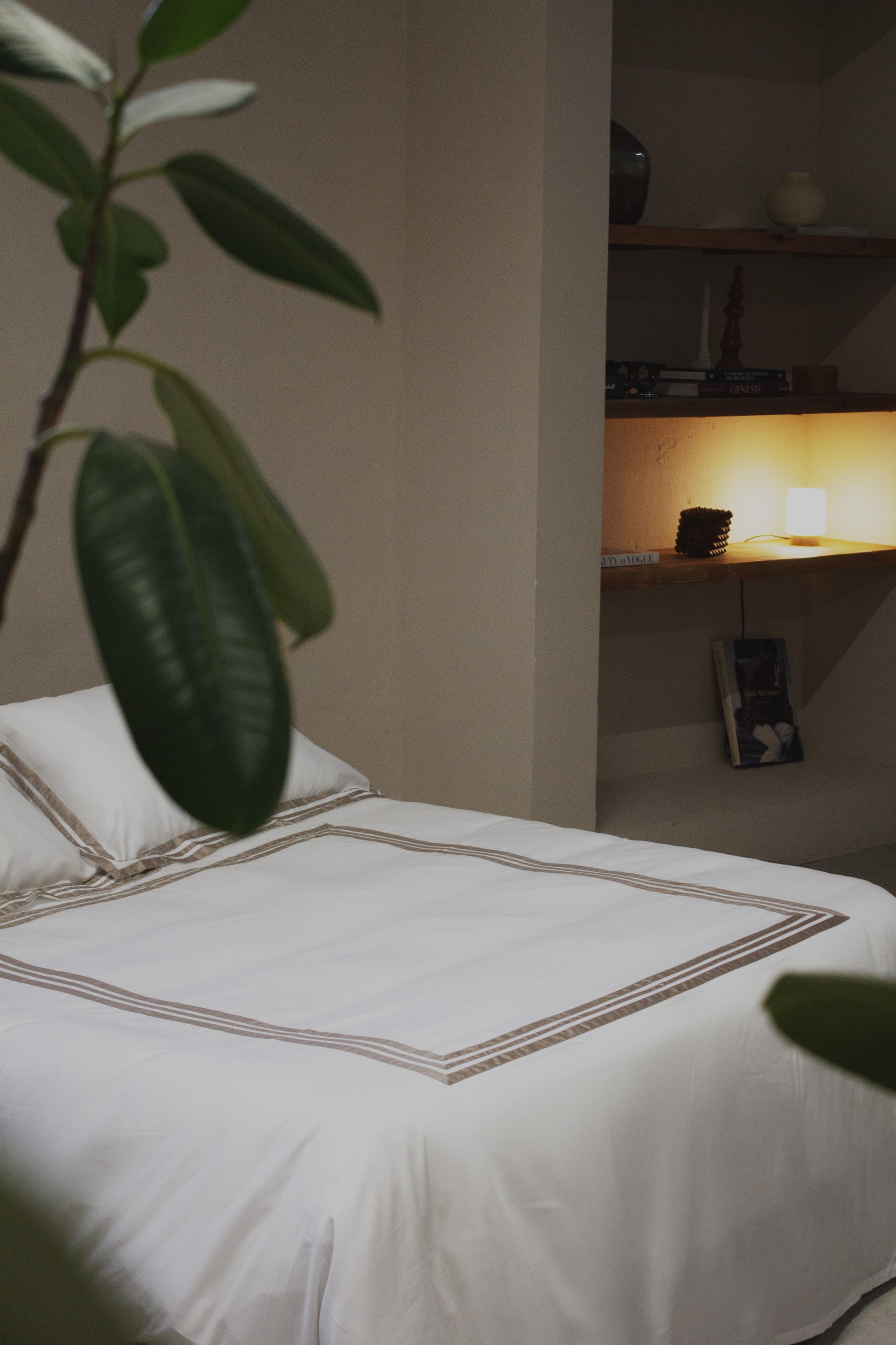The Coconut Set achieves a delicate balance between softness and form, with visible brown attachments that serve as quiet focal points—elegant in their simplicity, sculptural in presence, and intentionally restrained. This set brings quiet elegance to your bedroom.