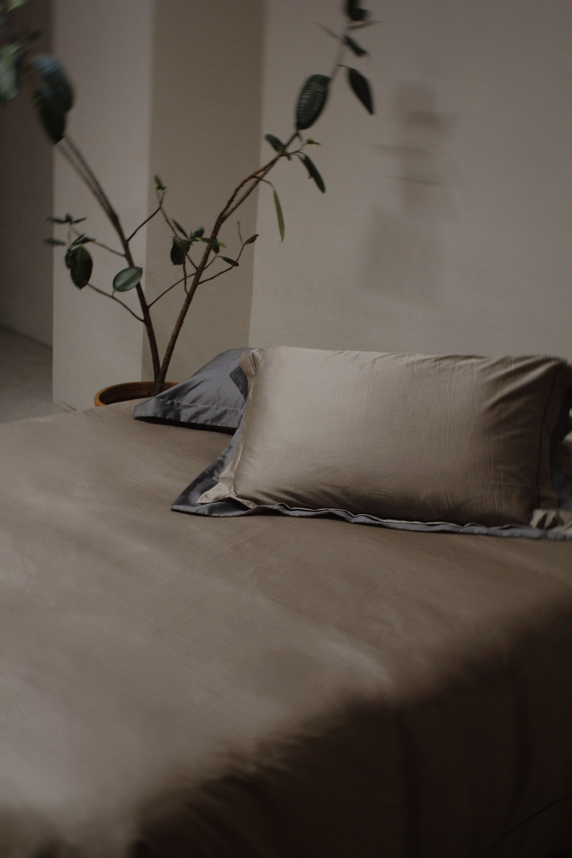 The Chestnut Set, in charcoal and taupe, offers a bold yet grounded contrast—warm, earthy tones that feel both modern and timeless. The subtle attachment detailing introduces an eclectic edge, while maintaining a sense of simple, understated elegance.